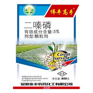 产品特点:本品具有强熏蒸、速胃毒、快触杀和一定的内吸作用。持效期比传统的土壤处理杀虫剂长达60天左右,对地下害虫及其虫卵如蛴螬、蝼蛄、地老虎、金针虫、地蛆等有广泛的杀灭作用且对作物根线虫有一定的防治效果。